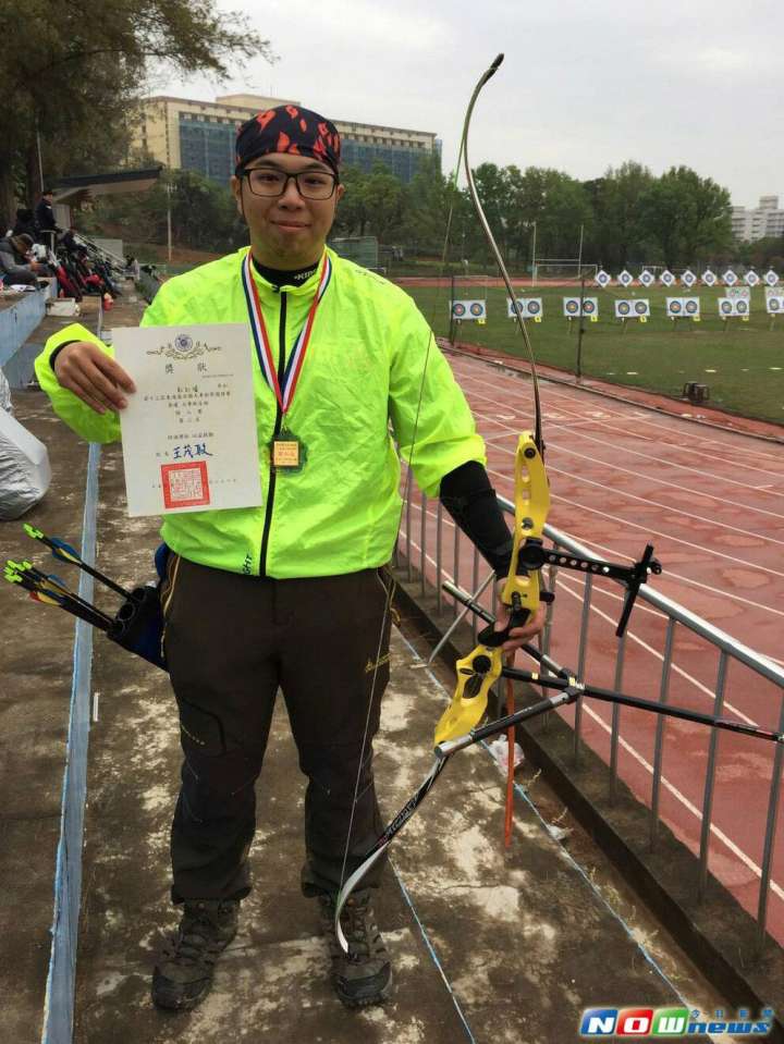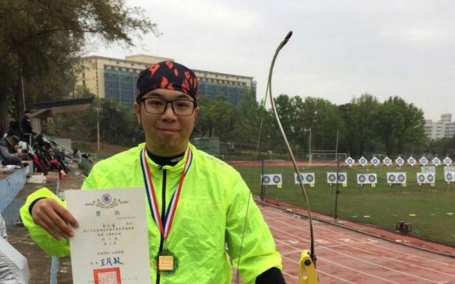 百步穿楊!大葉大學休閒事業管理學系大四生鄭郁騰,四個月前才開始練習射箭,參加第十三屆東海盃全國大專院校射箭邀請賽,從28名參賽選手中脫穎而出,勇奪大專新生組第二名,捷報在校園裡分享,休閒事業管理學系老師謝佩伶說,鄭郁騰真是神射手。