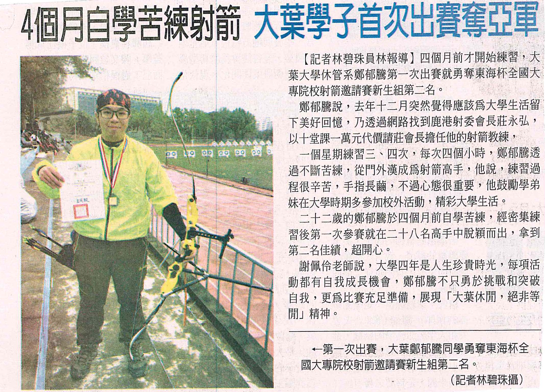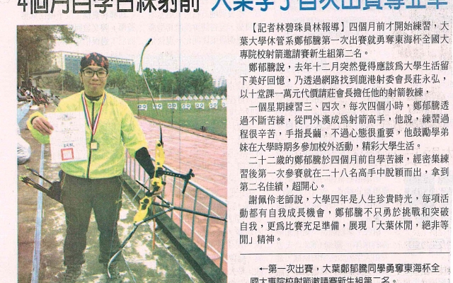 下一則:大專射箭賽 大葉鄭郁騰奪銀