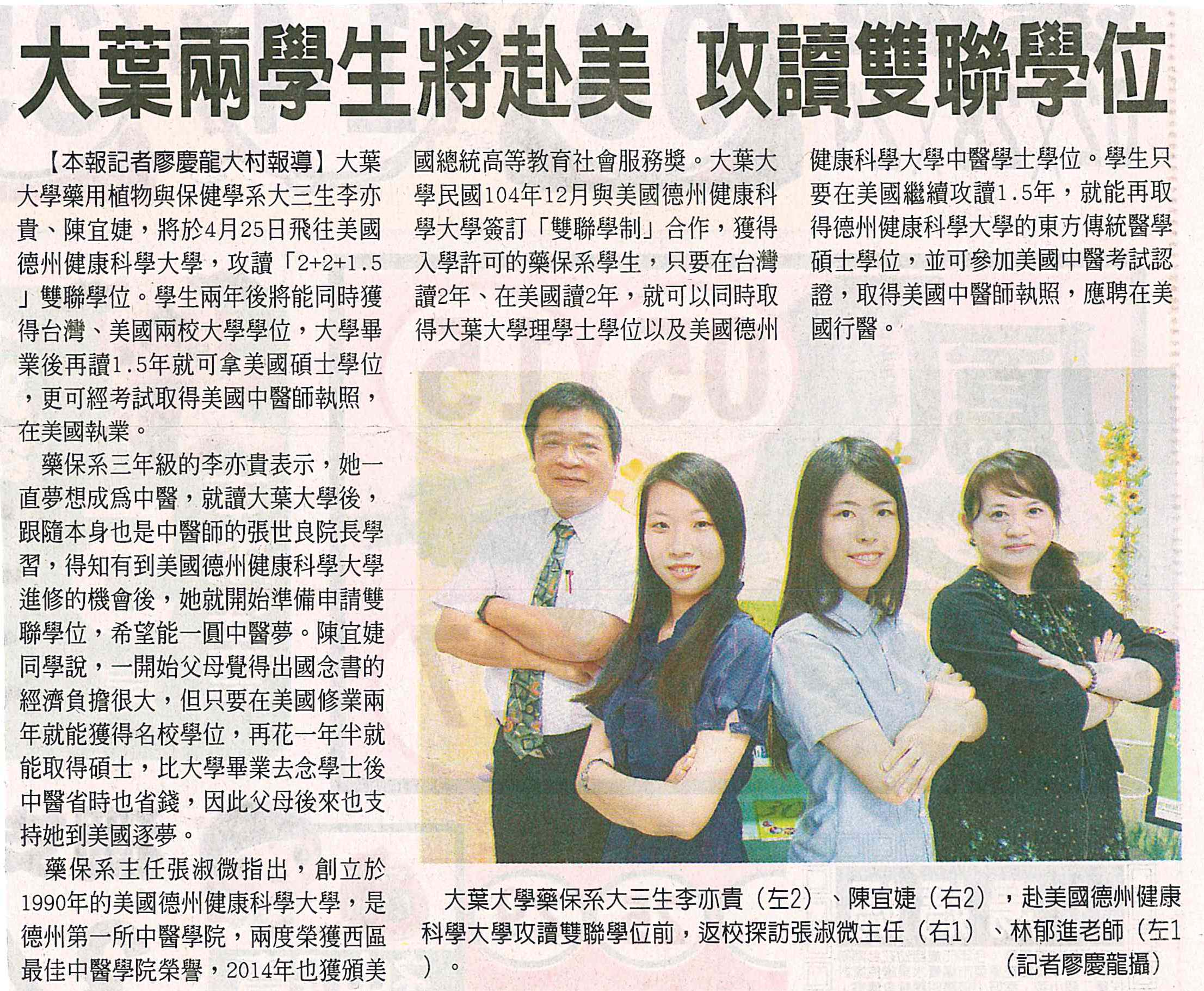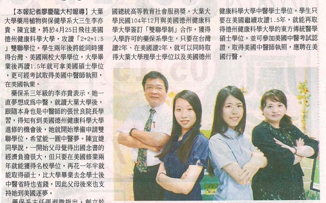 下一則:大葉藥保系2生 將赴美攻讀雙聯學位