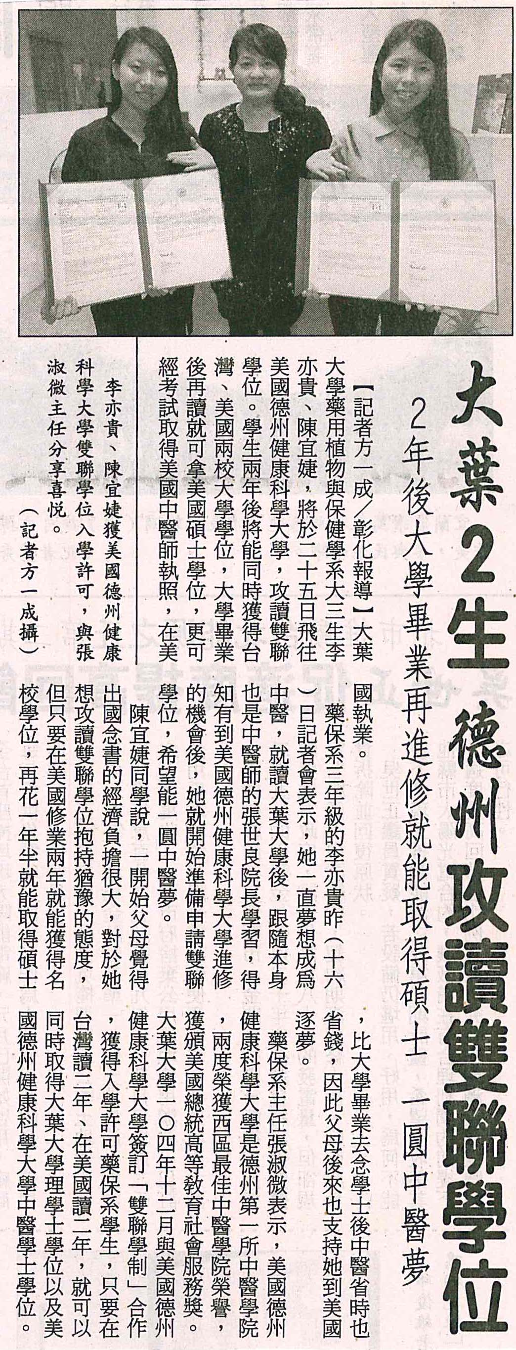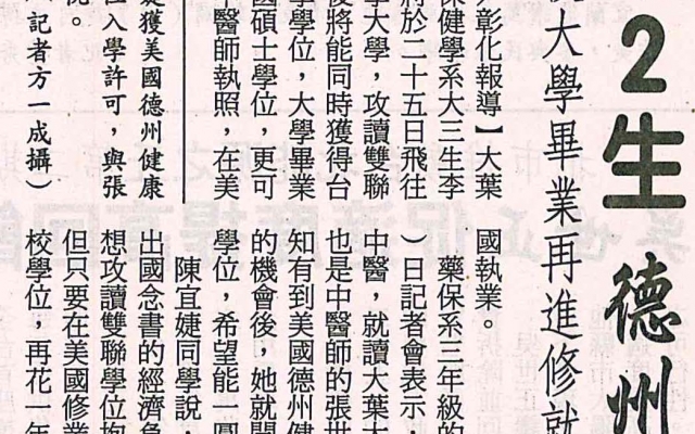 大葉2生 德州攻讀雙聯學位