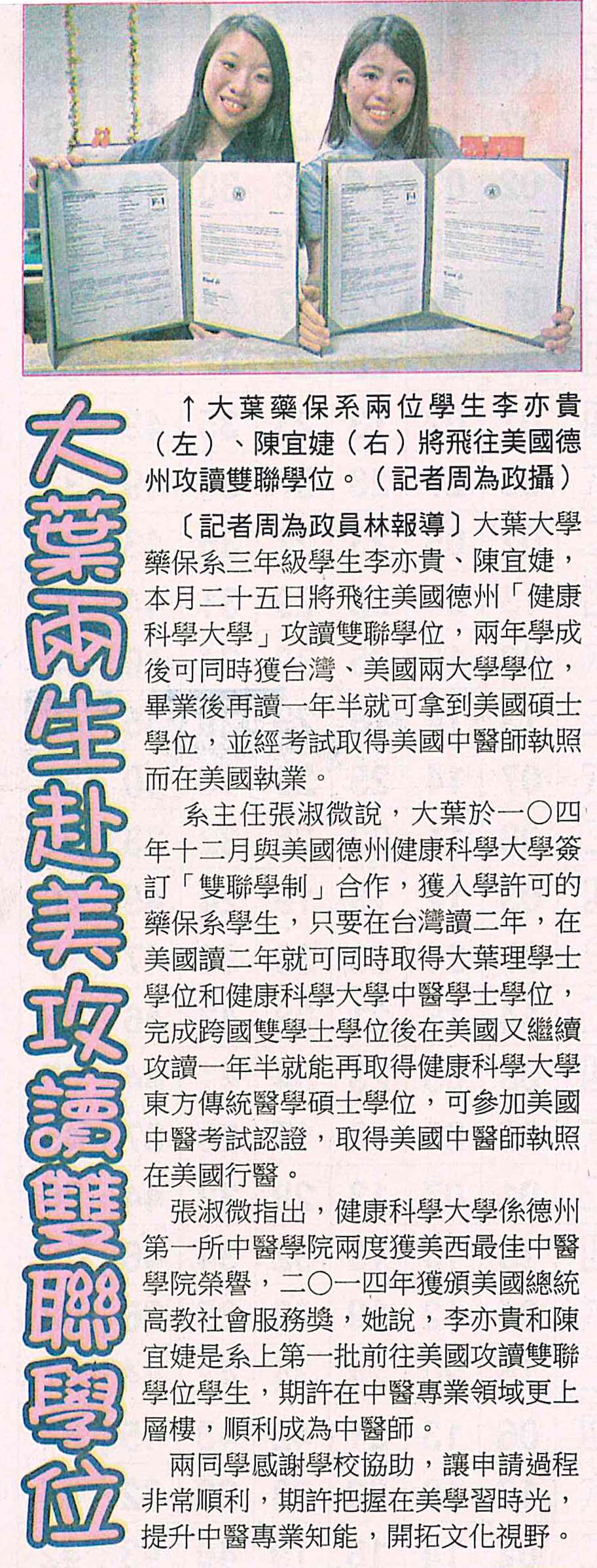 下一則:大葉2生 飛美攻讀雙聯學位