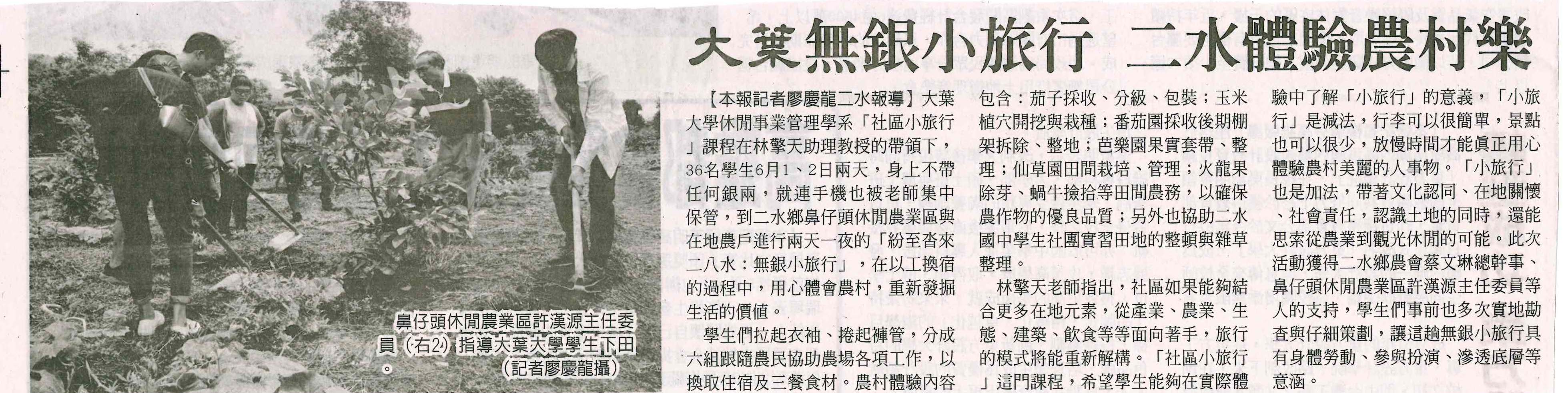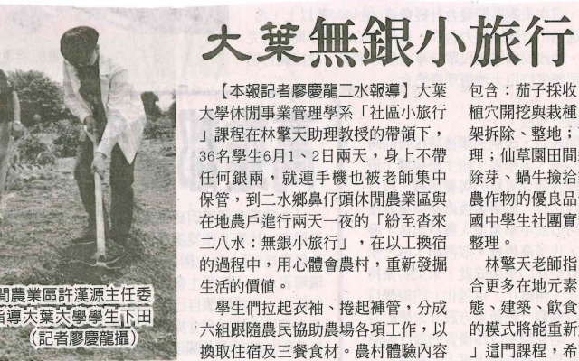 下一則:大葉大學休閒系學生 二水農村體驗學習