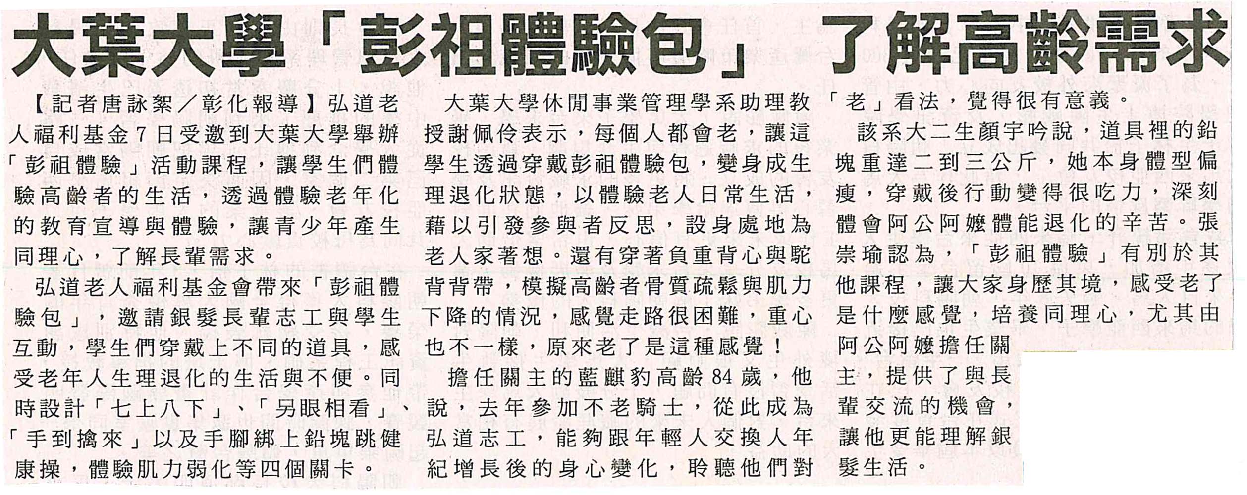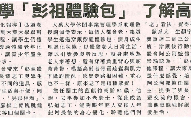 下一則:大葉生透過「彭祖體驗包」感受老人不便