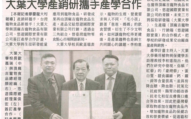 大葉大學產銷研攜手產學合作
