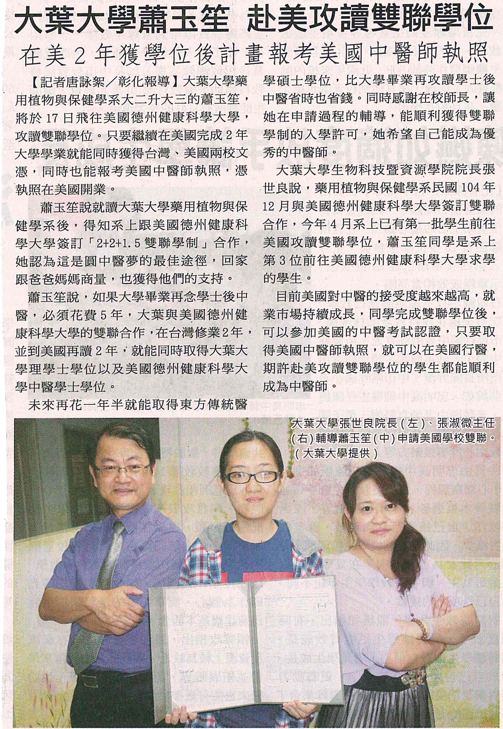 大葉大學蕭玉笙 赴美攻讀雙聯學位