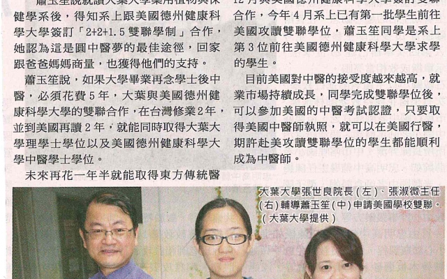 上一則:大葉藥保系蕭玉笙 赴美讀雙聯學位