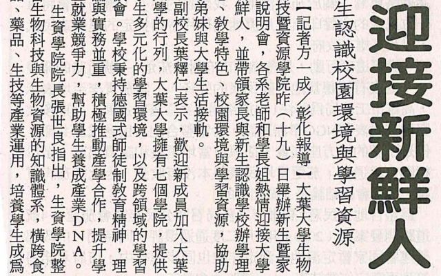 上一則:大葉大學生物科技暨資源學院 辦新生暨家長說明會