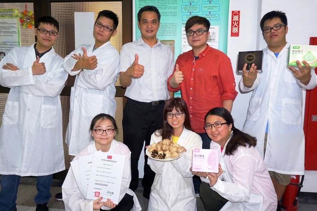 研究團隊是藥用植物與保健學系助理教授蔡仁傑,研究生陳頤安、曾?豪、翁錦魁,3項專利是「蒜熟成設備」、「黑蒜加工產品加速熟成裝置」、「黑蒜水萃物在製備促進腸道排空之藥物的用途及包含黑蒜水萃物的食品」。蔡仁傑說,下一階段研發團隊將持續開發黑蒜產品,讓黑蒜的應用層面更廣。