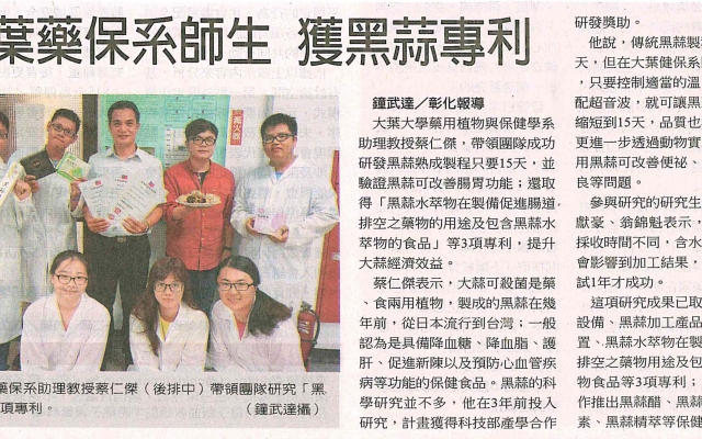 下一則:視大蒜為養生聖品 大葉大學藥保系獲專利