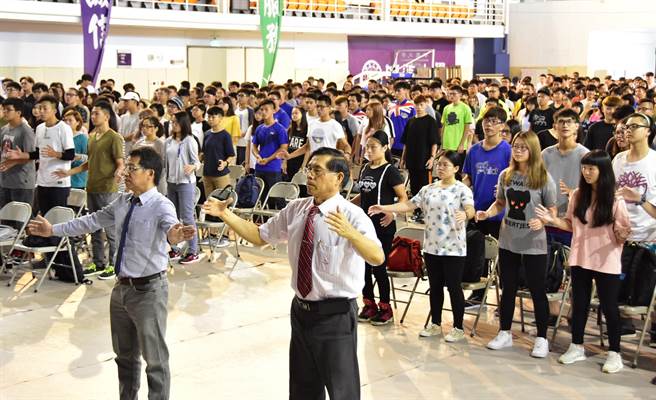 明道大學的迎新活動,605名新鮮人齊聚居仁堂,除了與校長、老師們一起練氣功,學習放鬆,並適應新環境,接著活力開學。