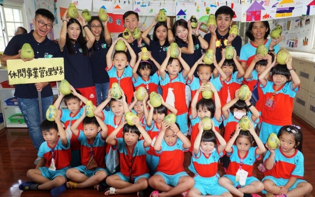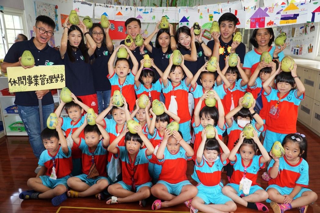 中秋節有什麼水果?對,柚子,柚子吃完了柚子皮可以做什麼?大葉大學休閒事業理系學生今天結伴走進學校附近的幼兒園,除講中秋節的故事,也教小朋友利用柚子皮創作。