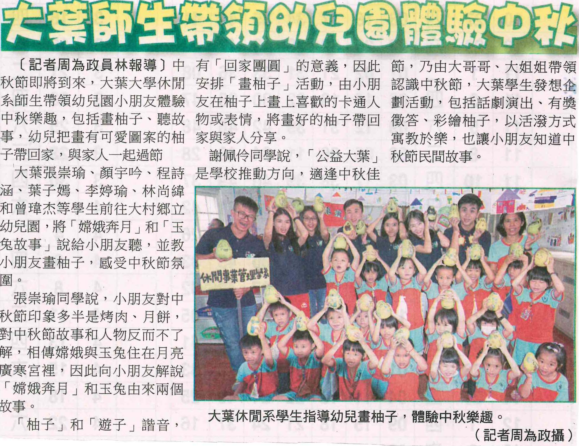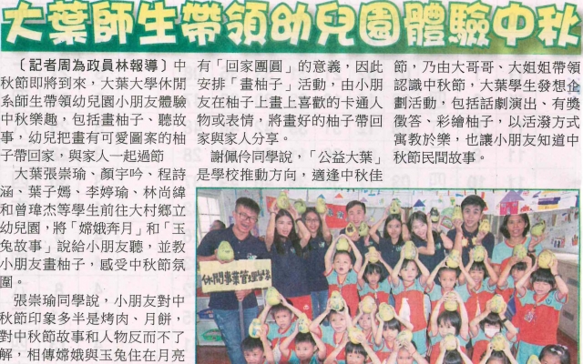 大葉師生帶領幼兒園體驗中秋