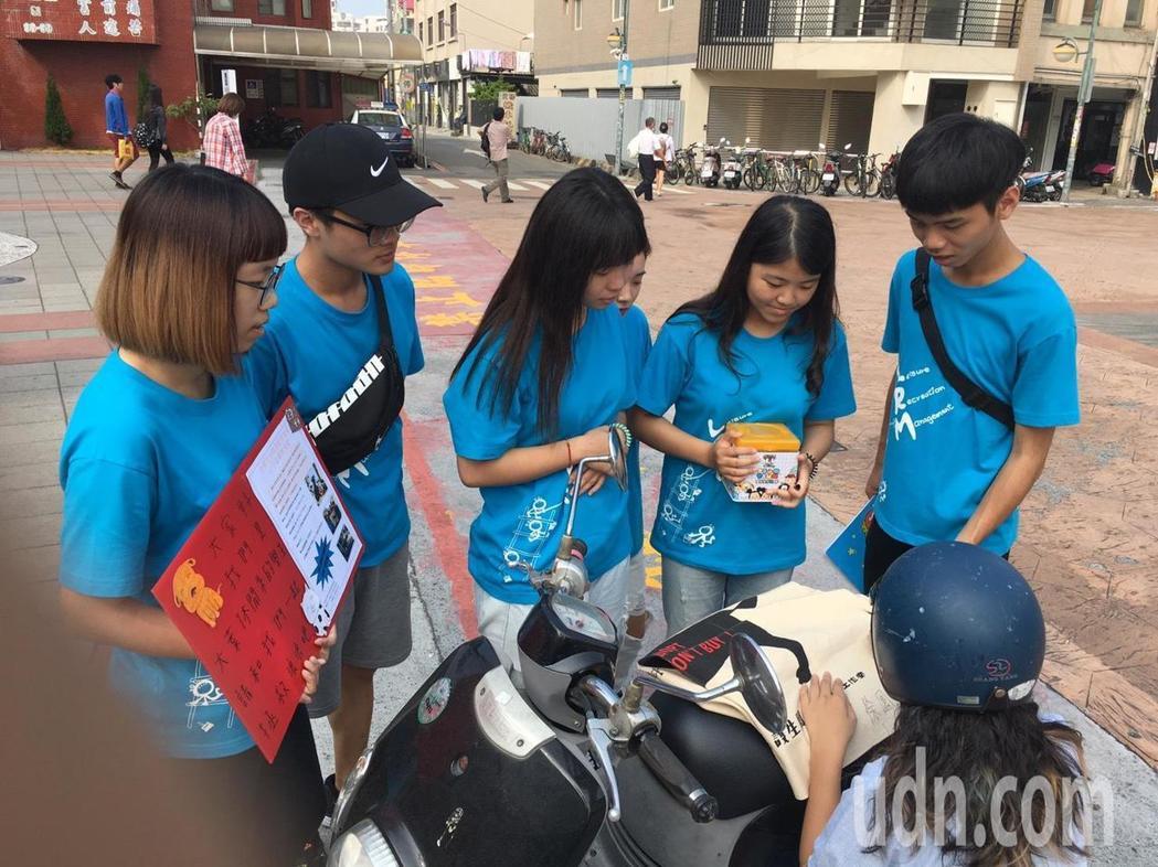「走到街上募款,這是很有感覺的體驗,有人熱情回應,有人冷冷走過。」大葉大學休閒事業系大二生陳妍伶今天說,她和同學帶著布條和傳單,在火車站前向往來的民眾募款,上了一堂在教室裡學不到的課。