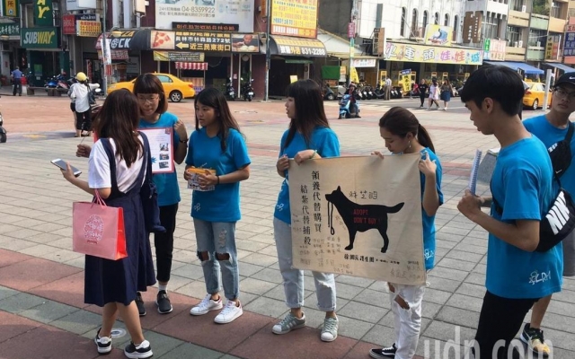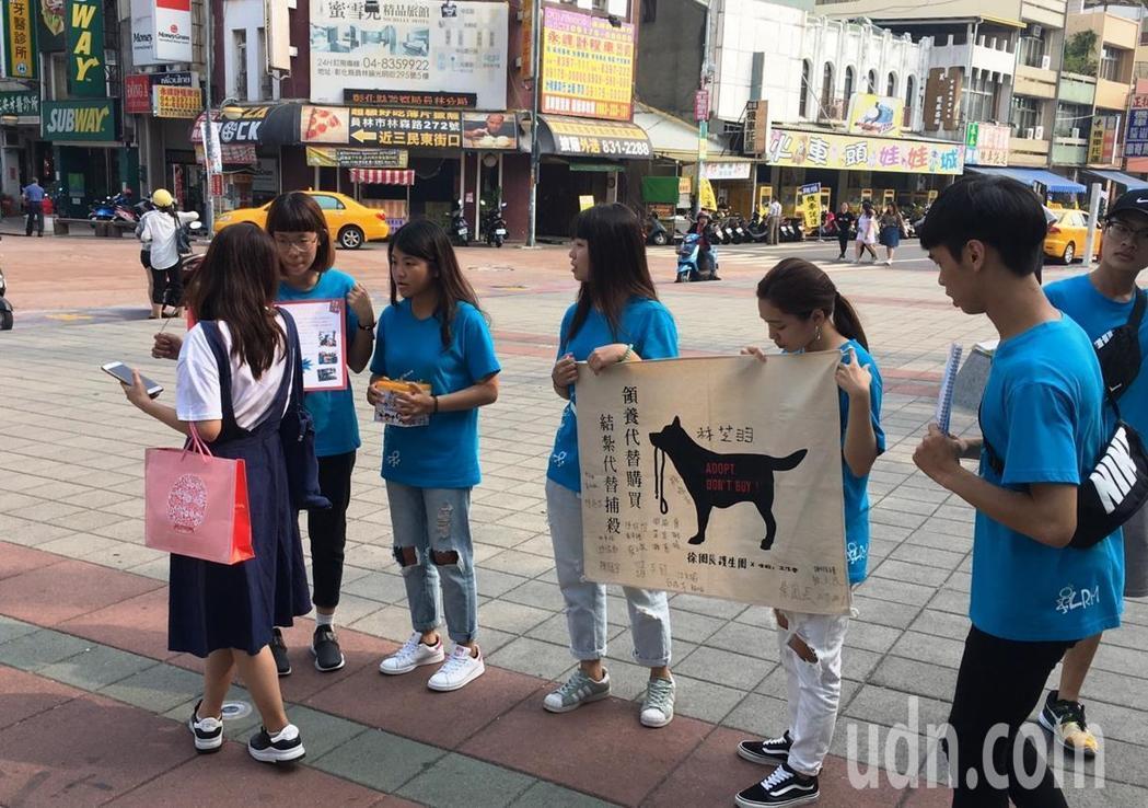 陳妍伶等人帶著布條與傳單,到員林火車站向往來的路人及店家募款,也呼籲大家「領養代替購買」。戚其蕙說,飼料1包18公斤要550元,他們希望能募集到5至20包,原本以為很困難,沒想到兩個星期就募到1萬1030元,買了20包,會把飼料及30元零錢都捐給徐園長護生園。