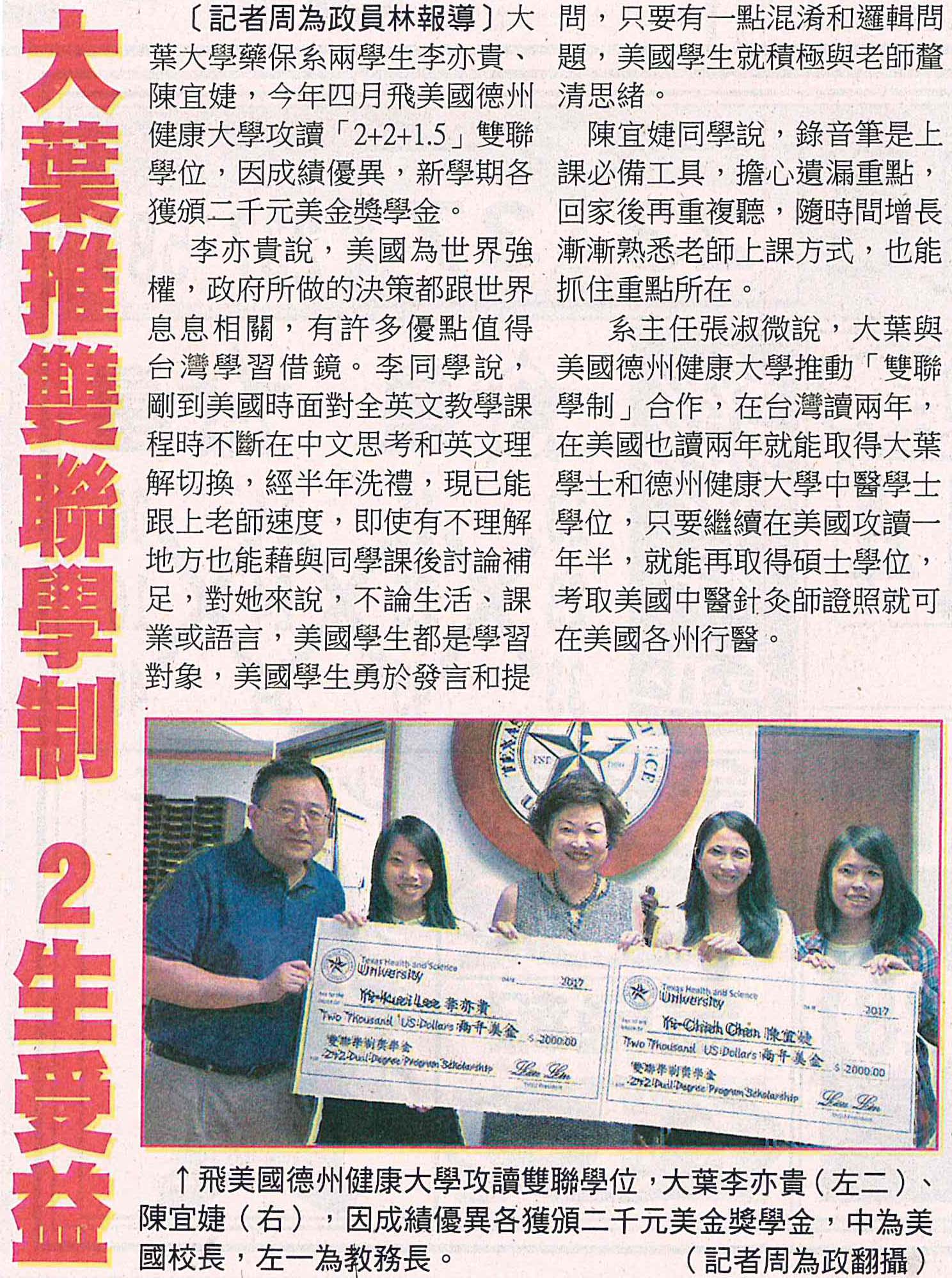 上一則:大葉2生赴美攻讀雙聯學位 獲頒獎學金