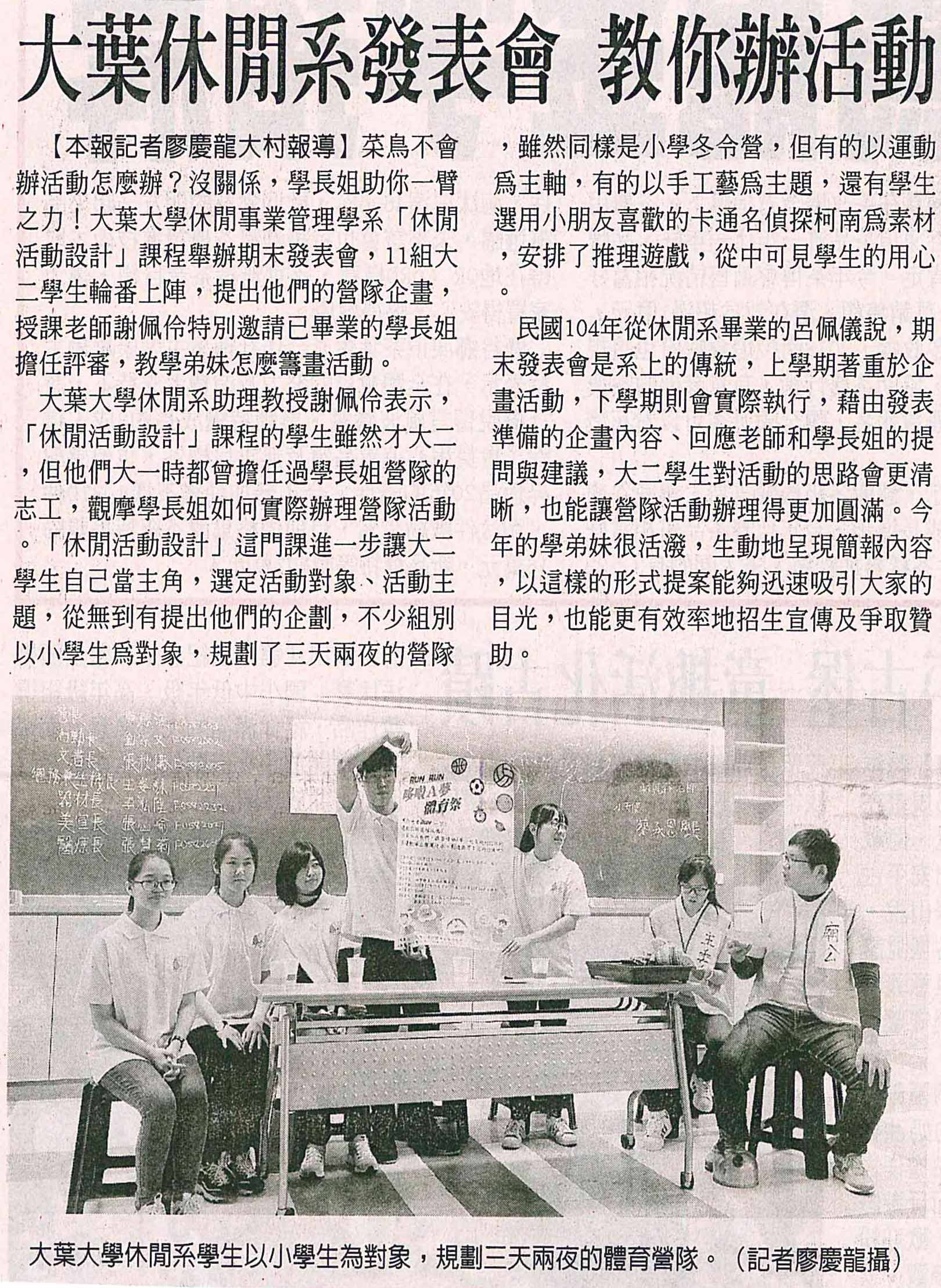下一則:不一樣的課堂作業 大葉大學休閒系募款送愛