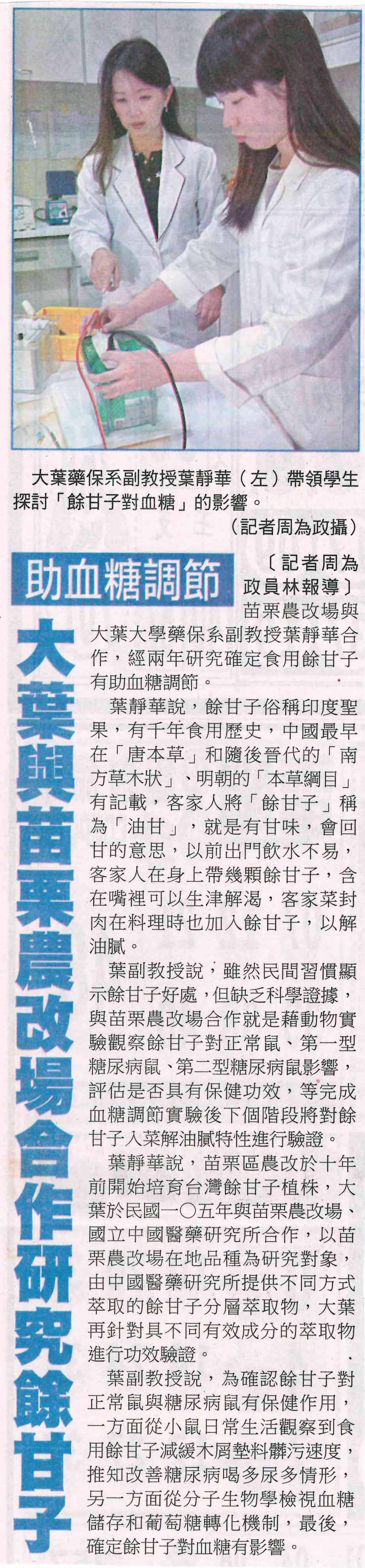 大葉與苗栗農改場合作研究餘甘子