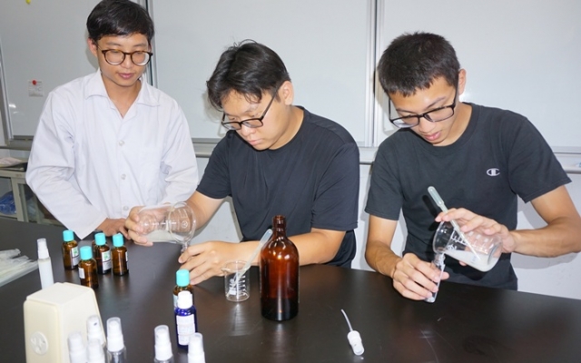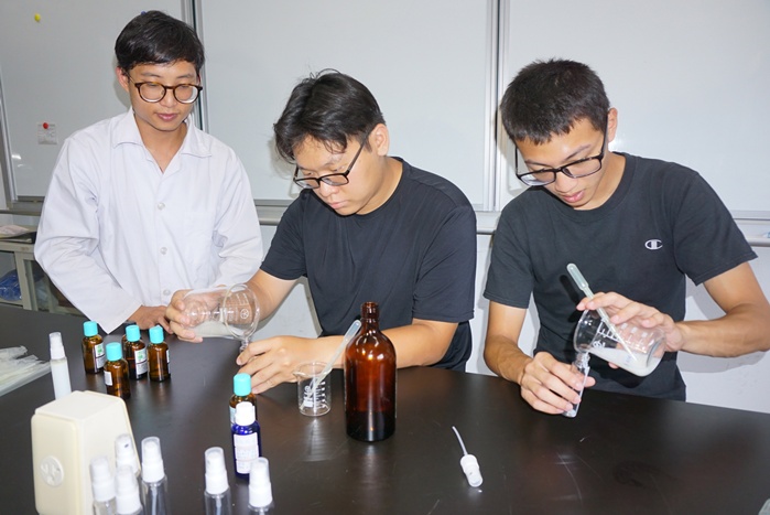 市售防蚊液含有不同化學藥劑,如何使用天然材料為大眾關心問題,講師謝啟弘教同學利用精油製作防蚊液,以防飛蚊攻擊。