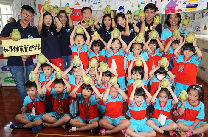 中秋節即將到來,大葉大學休閒系師生今(28)日帶領幼兒園小朋友體驗中秋的樂趣,包括畫柚子、聽故事,幼兒把畫有可愛圖案的柚子帶回家,與家人一起過節。