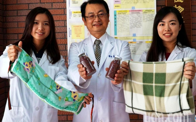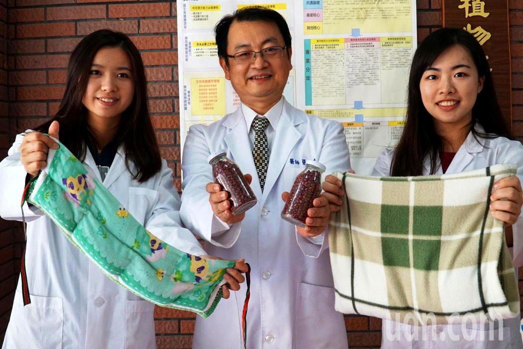 張世良本身是藥用植物與保健學系教授兼中醫師,入冬後,他指導學生試用不同的豆類自製暖暖袋。林高有說,實驗確認以紅豆的顆粒大小、溫熱持續度最好,只要紅豆沒有燒焦,就能一直重複使用。