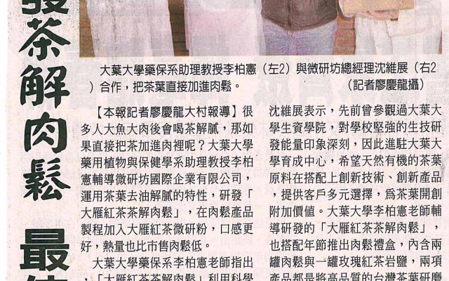 下一則:大葉研發成功大雁紅茶茶解肉鬆