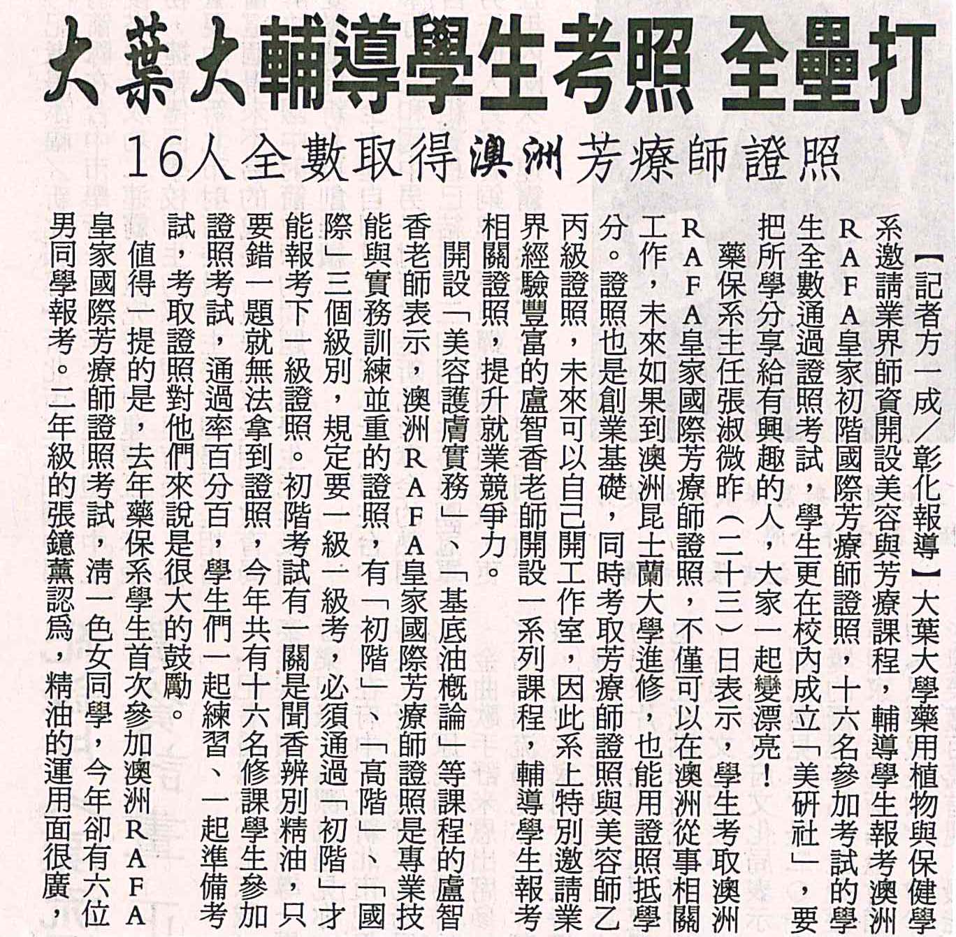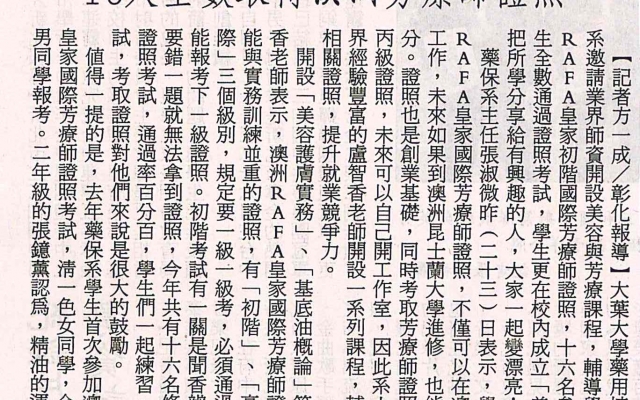 下一則:大葉大學藥保系學生考取澳洲皇家初階國際芳療師證照