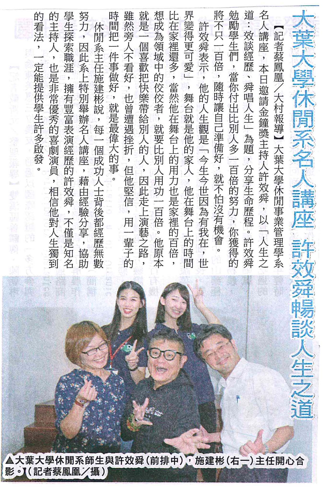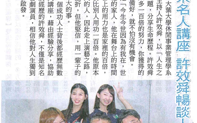 大葉大學休閒系名人講座 許效舜暢談人生之道
