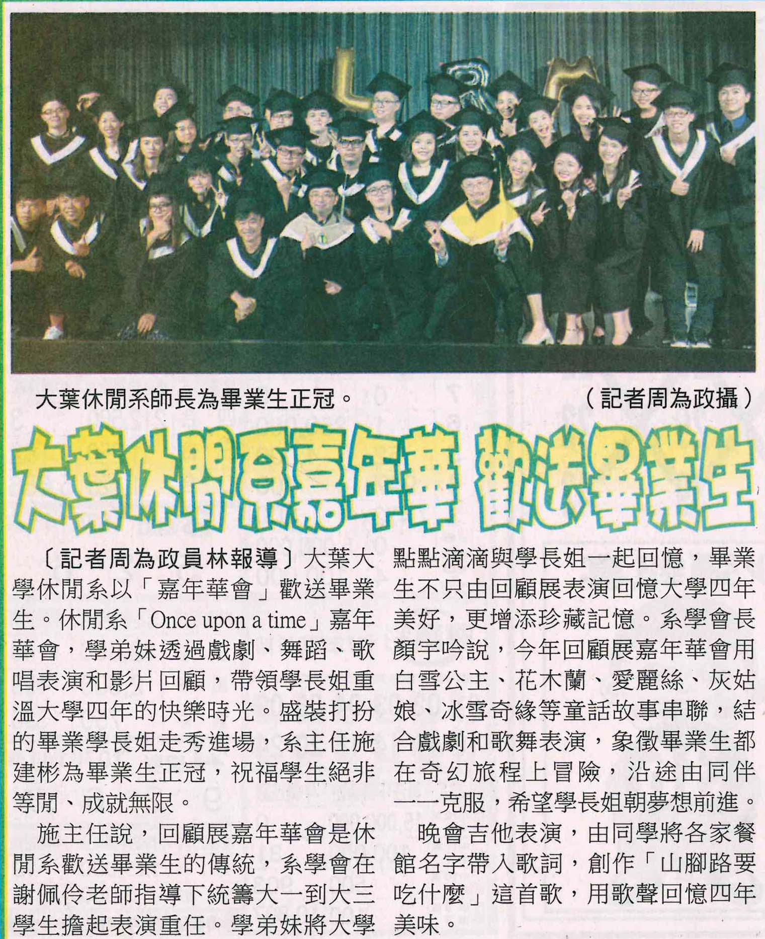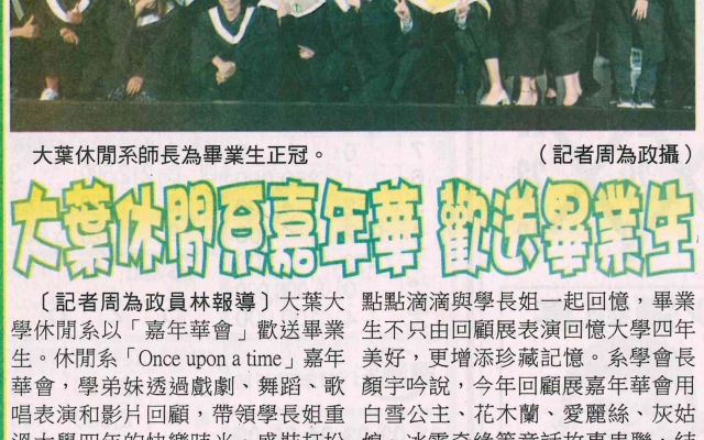 下一則:歡送畢業生 大葉大學休閒系辦嘉年華會