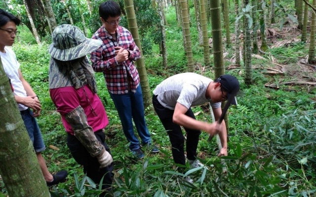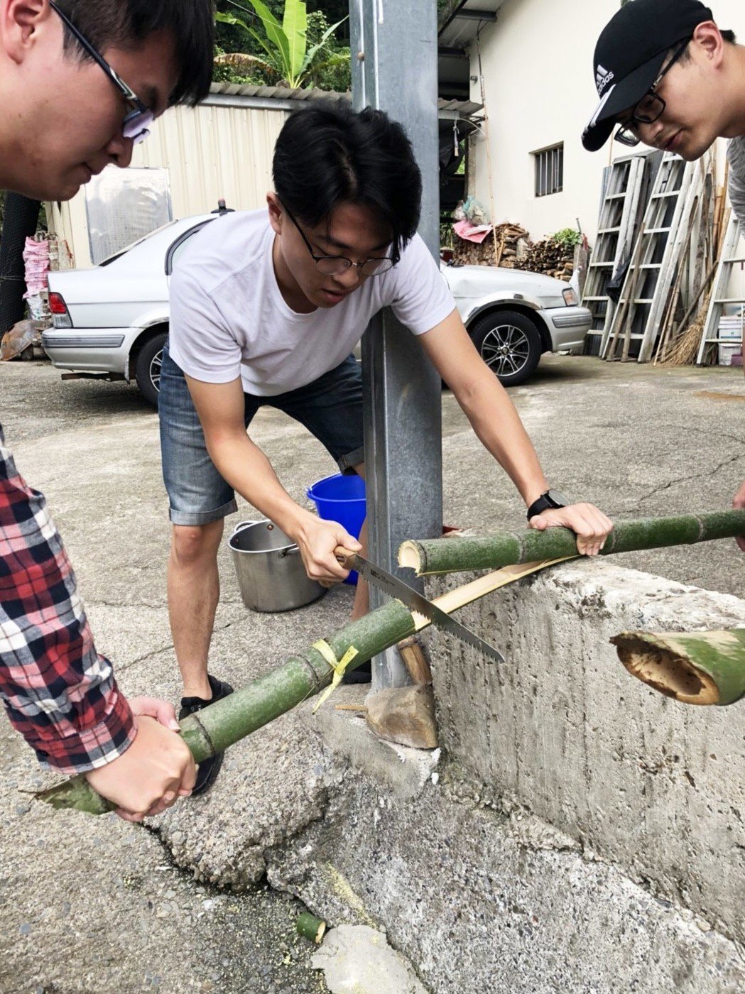 大葉大學休閒事業管理學系有一門「社區小旅行」課程,助理教授林擎天都會在學生走入社區親身體驗,有時住在廟宇香客大樓、社區打地舖,這回到魚池鄉東光社區,學生只能攜帶最簡便的行李、自備餐具,身上不能帶錢,由社區理事長王美惠安排到不同農戶,以工換餐、以工換宿,體驗2天1夜的農村生活。