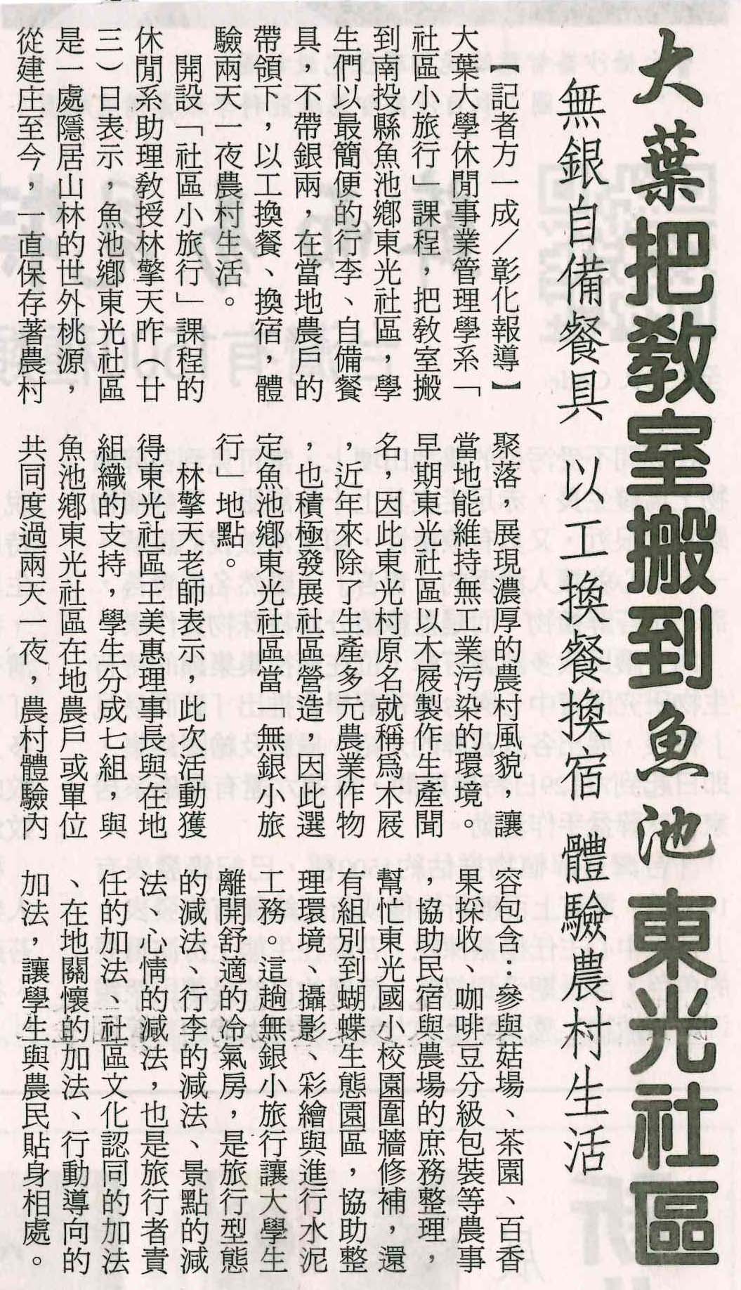 下一則:大葉休閒系學生下鄉體驗「無銀小旅行」生活
