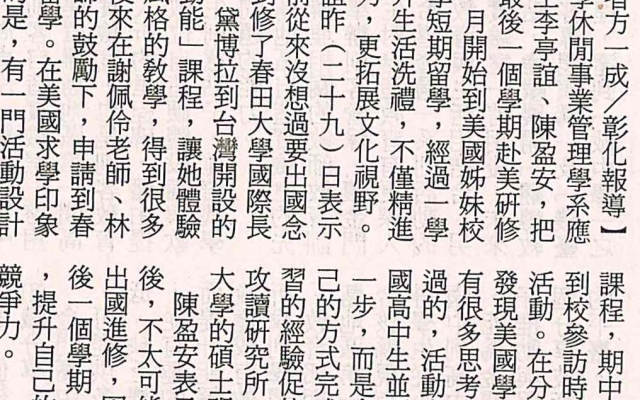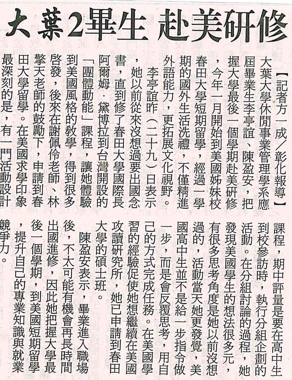 大葉2畢生 赴美研修
