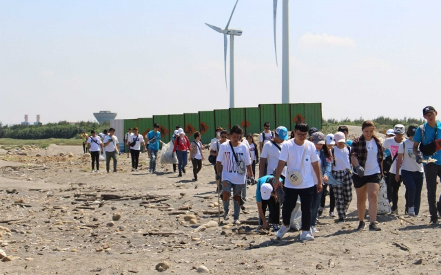 大葉大學休閒事業管理學系大三生黃鈞琪、楊忠德、邱珮珊、徐鎵煒、陳宜伶、李豪,發起「參一角,來淨灘」活動,號召四十人一起前往彰化縣線西鄉肉粽角沙灘淨灘(見圖),用行動響應環保。