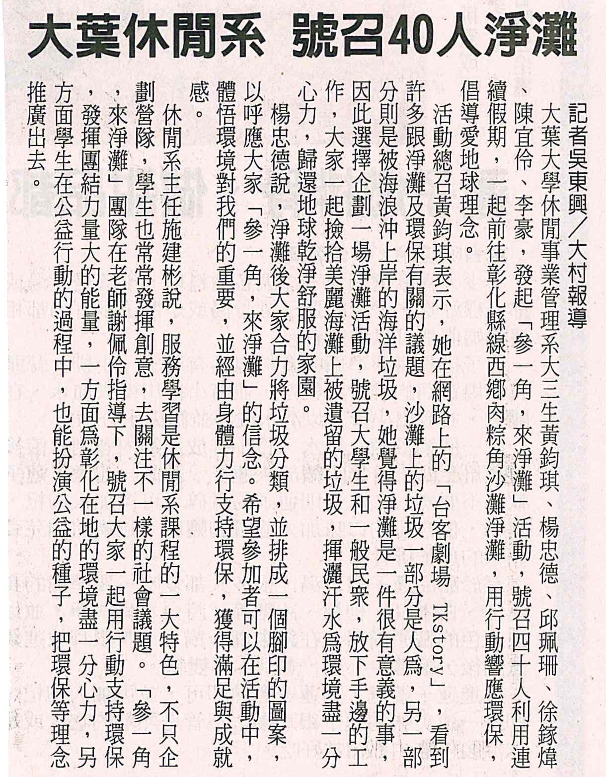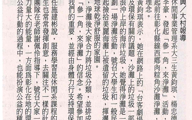 下一則:大葉休閒系學生 前往線西鄉淨灘