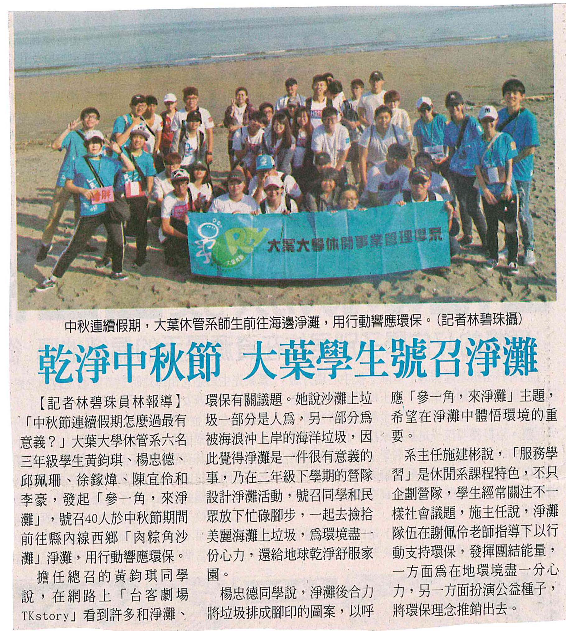 乾淨中秋節 大葉學生號召淨灘