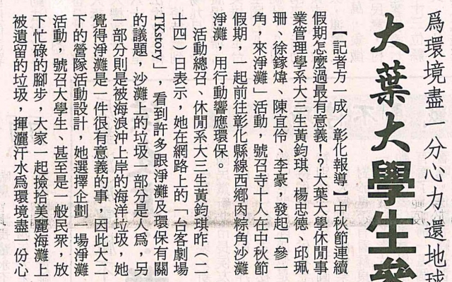 下一則:乾淨中秋節 大葉學生號召淨灘