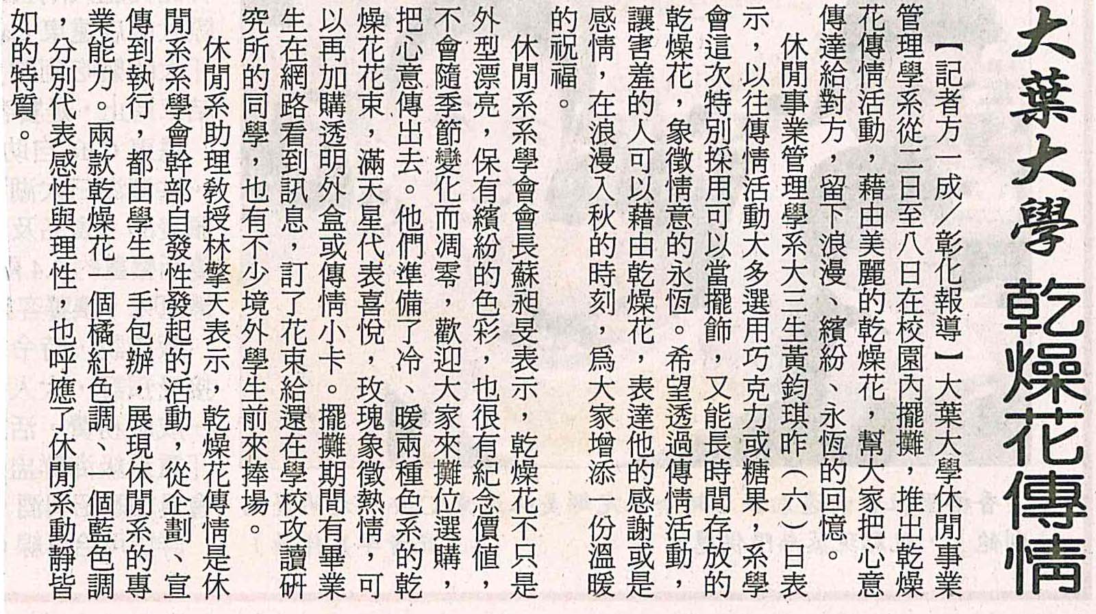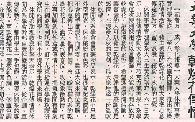 下一則:大葉大學推乾燥花傳情活動