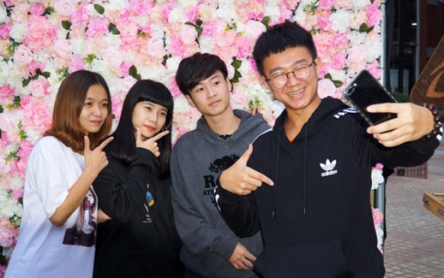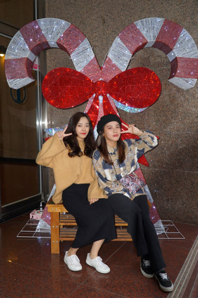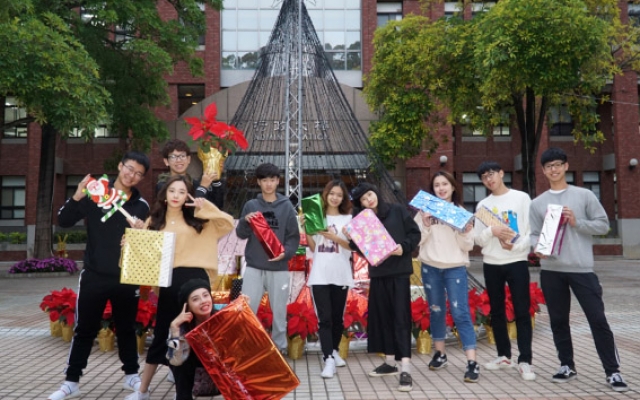 休閒事業管理學系大一生陳衍旭說,他從台南到彰化念大學,這是他第一次離家在外過聖誕節,謝謝學校貼心準備的聖誕佈置,讓大家可以開心地自拍,感覺很溫馨。