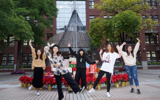 休閒系大四生張崇瑜認為,從建築物內到廣場的系列聖誕裝置藝術,不只是漂亮,也成為校內拍照、打卡的新地標,讓他們在企畫活動時,多了新的景點選擇。