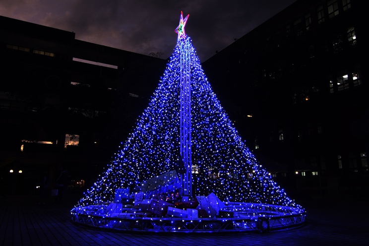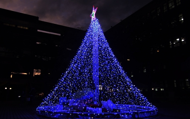 西洋聖誕節將屆,大葉大學裝置一棵聖誕樹,非常吸睛。