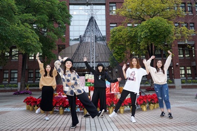 今年學生會非常用心,除聖誕樹外,還精心打造唯美花牆,讓同學站在花牆前自拍,一系列聖誕裝置藝術,在白天與晚上各有不同風貌,歡迎同學自拍打卡。