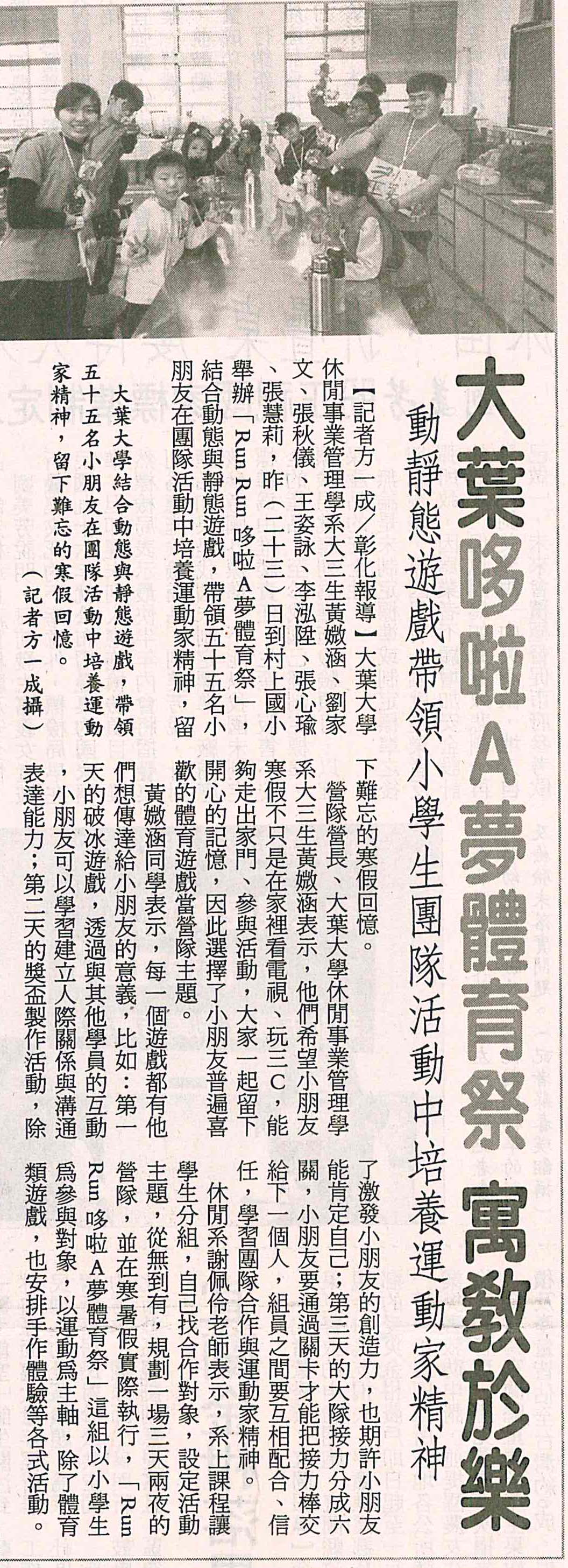 下一則:村上國小哆啦A夢體育祭 大葉大學培養運動家精神