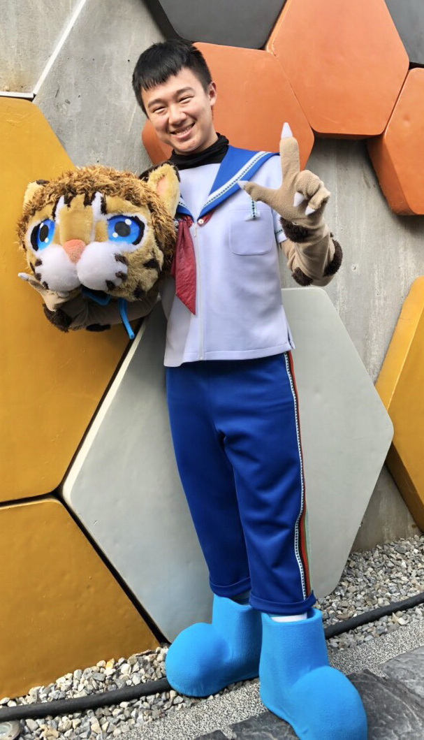 張同學說,參與表演經驗難得,因身上穿玩偶裝,動作須放大才能吸引目光,此外,布偶鞋子比一般鞋子又寬又大,頭套視線受到限制,對肢體律動係一大考驗。