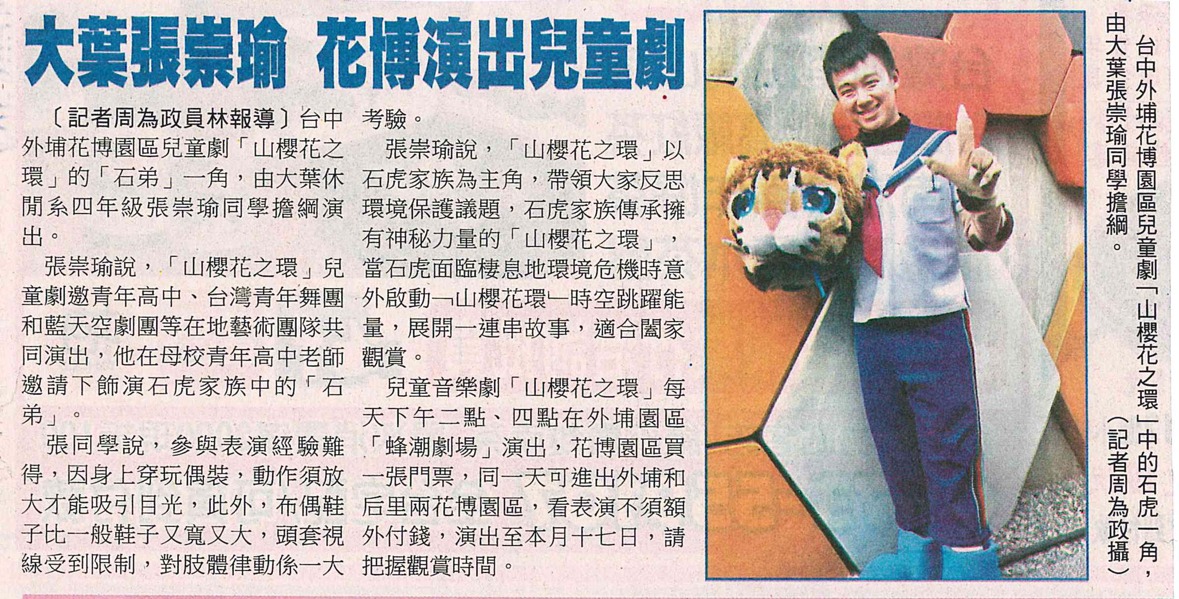 下一則:大葉大學生參與花博外埔園區《山櫻花之環》兒童劇演出