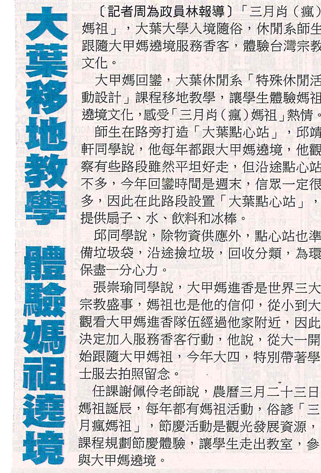 大葉移地教學 體驗媽祖遶境