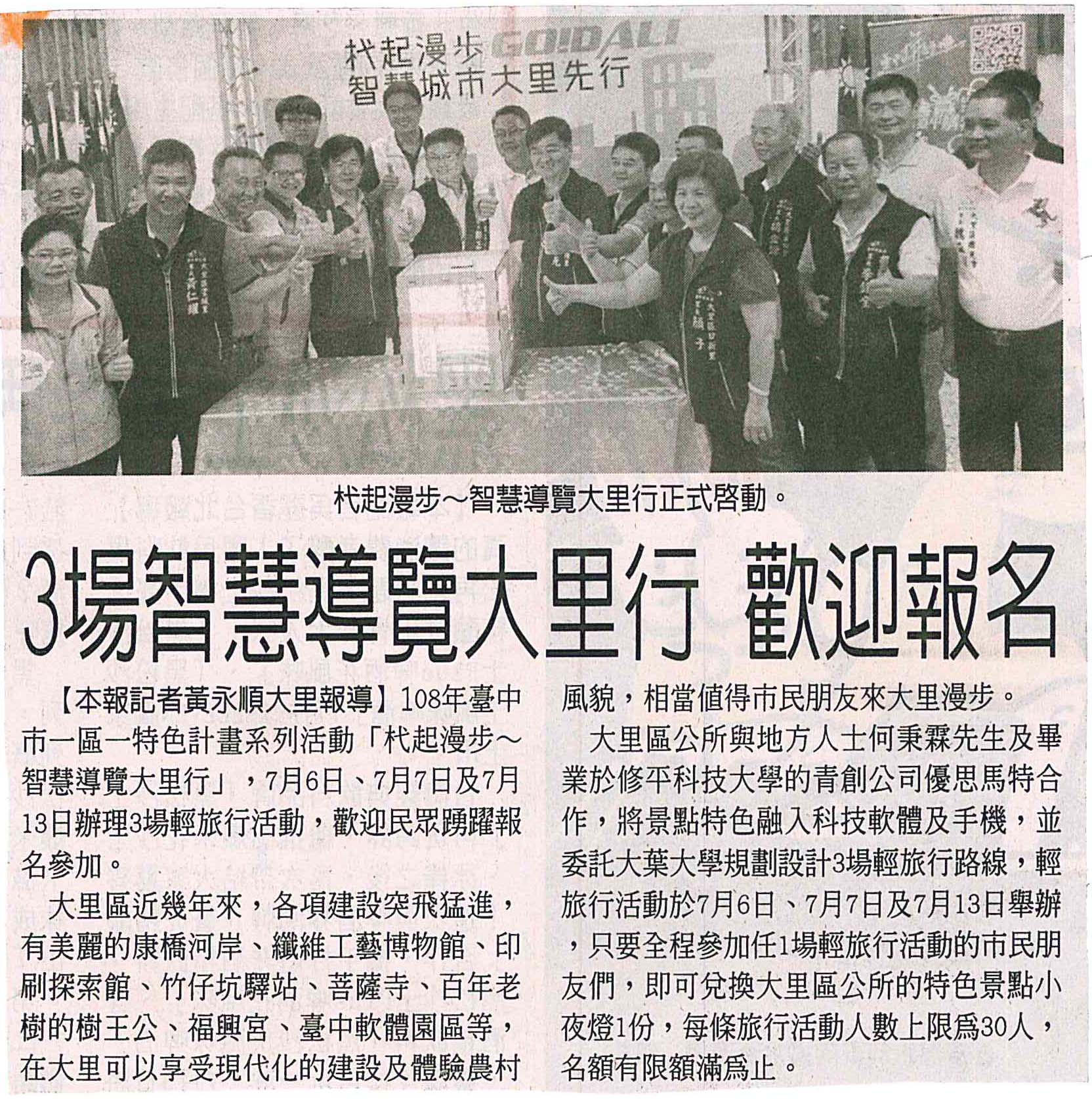 上一則:大里公所將舉辦三場杙起漫步─智慧導覽大里行