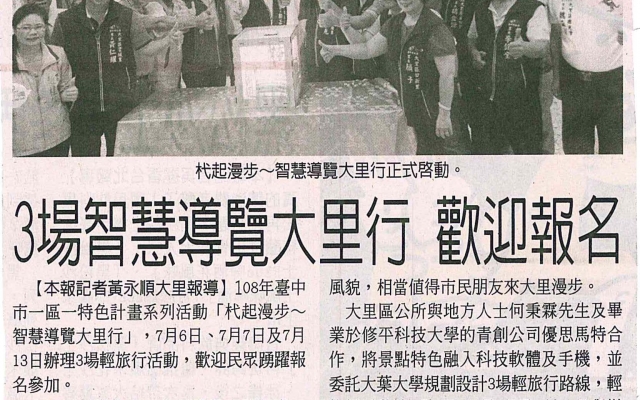 3場智慧導覽大里行 歡迎報名