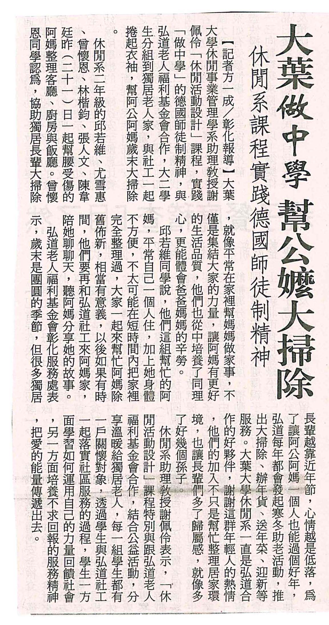 上一則:大葉休閒系學生幫打掃 長輩笑嗨嗨