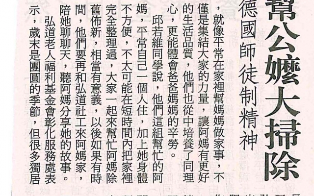 下一則:大葉大學同學超有愛 攜手弘道老人幫獨居長輩大掃除