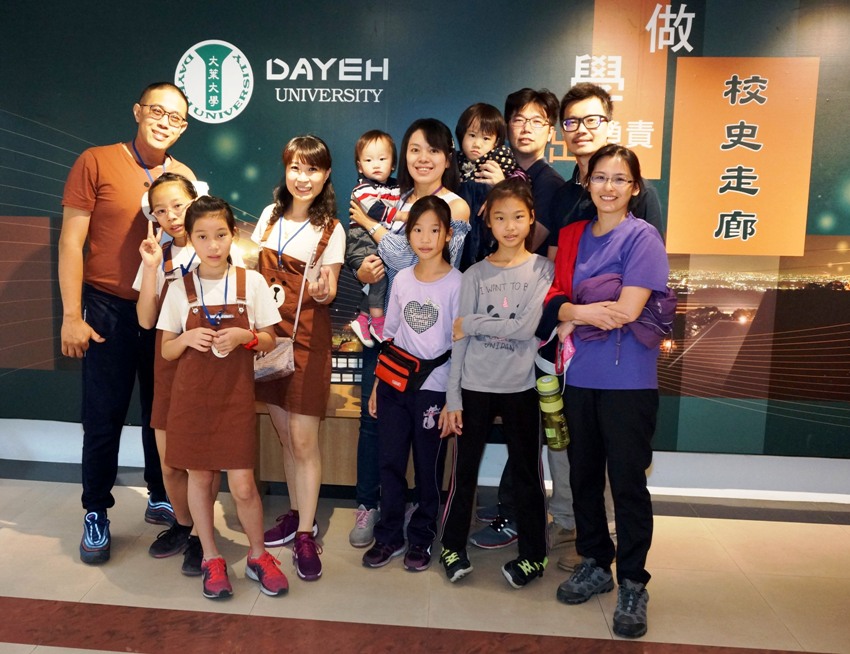 侯雪娟主秘指出,休閒事業管理學系發揮大葉大學德國師徒制精神,學長帶領學弟妹共同執行校友回娘家活動,上午結合闖關遊戲與校園巡禮,讓校友夫妻在玩遊戲的同時,走訪管院大悅池、工學院水濂池等校園美景,並認識學校的景觀電梯等新建設,下午則安排有洗髮精、防蚊膏、天氣瓶等DIY體驗,讓校友重溫「做中學」的大學時光,也讓校友的孩子們一起感受爸爸媽媽的校園回憶。
