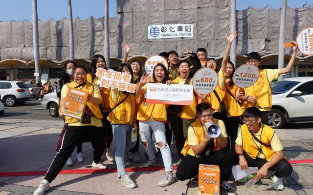 教育結合公益,弘道老人福利基金會「寒冬助老,刻不容緩」募款活動,大葉大學休閒事業管理學系大二學生走出教室,到火車站、菜市場與街上,募集大家的愛心捐款與發票,讓阿公阿媽過一個溫暖的好年。